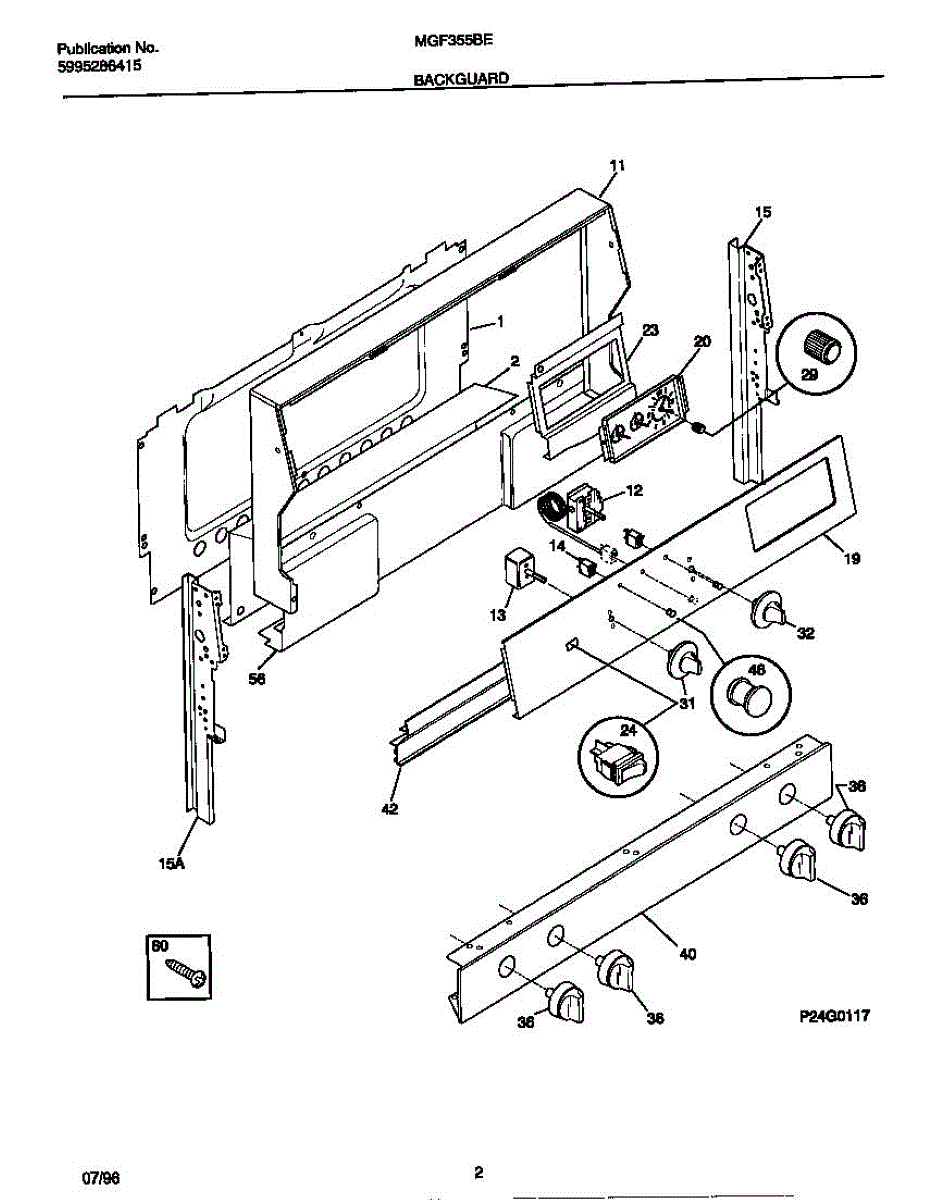Parts for Frigidaire MGF355BEWD: 02 - Backguard Parts