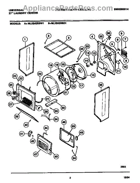Note: For the Hi-Temp Adhesive, order part number 5308027429. Additional parts to check are the rear drum bearing kit 5303281153 and the front felt glide assembly 5303937139.