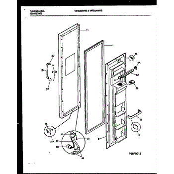 Left-hand door shelf end cap support secures refrigerator door shelves. Replace if cracked, broken, or missing to properly hold door bins in place.