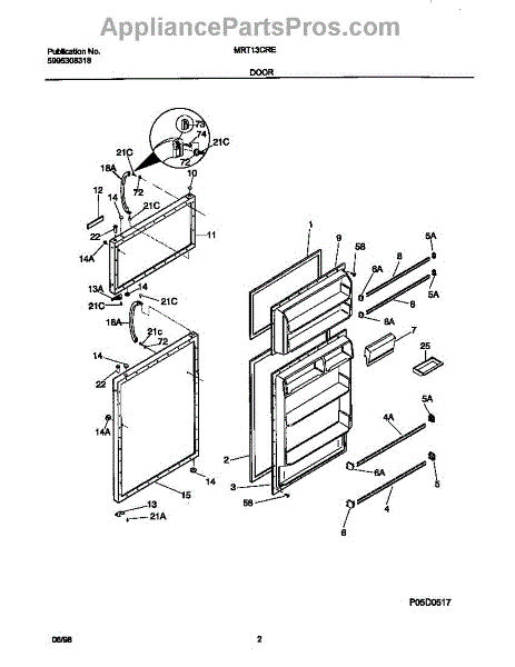 The Door Shelf Support is an OEM part for Frigidaire refrigerators. This part supports the door shelf, providing a sturdy base to hold various items such as bottles, jars, and condiments securely in place on the refrigerator door.