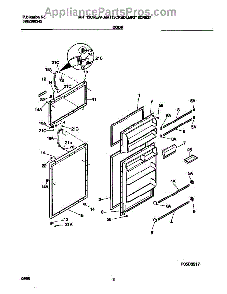 The Door Shelf Bar is an OEM part for Frigidaire refrigerators. It is designed to secure items on the refrigerator door, providing additional storage space and helping to keep items organized and easily accessible. The sturdy construction ensures that it can hold bottles, jars, and other items securely. It measures approximately 31 inches in length.