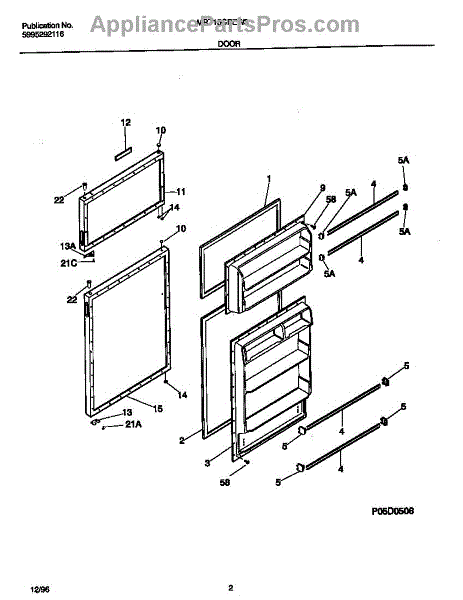 The Door Shelf Support is an OEM part for Frigidaire refrigerators, designed to hold and support the shelves on the inside of the refrigerator door. This part ensures that door shelves are securely mounted, providing stable storage for bottles, condiments, and other items.