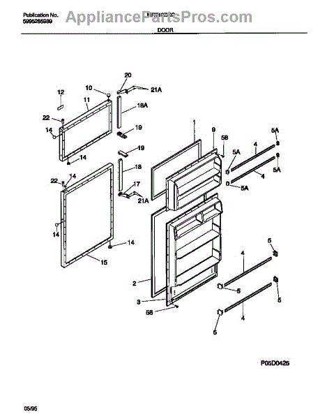 The Door Shelf Support is an OEM part for Frigidaire refrigerators, designed to hold and support the shelves on the inside of the refrigerator door. This part ensures that door shelves are securely mounted, providing stable storage for bottles, condiments, and other items.