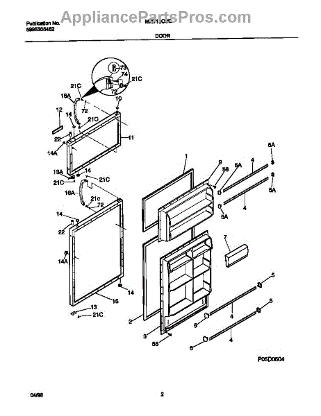 The Door Shelf Support is an OEM part for Frigidaire refrigerators, designed to hold and support the shelves on the inside of the refrigerator door. This part ensures that door shelves are securely mounted, providing stable storage for bottles, condiments, and other items.