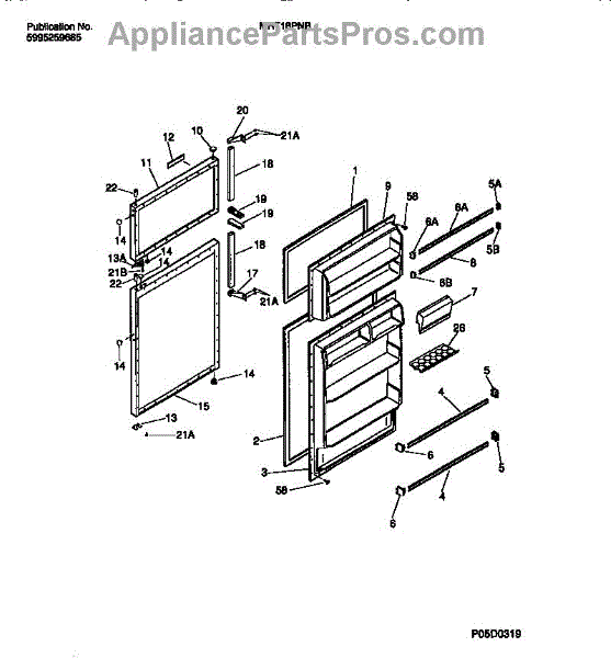 The Door Shelf Support is an OEM part for Frigidaire refrigerators. This part supports the door shelf, providing a sturdy base to hold various items such as bottles, jars, and condiments securely in place on the refrigerator door.
