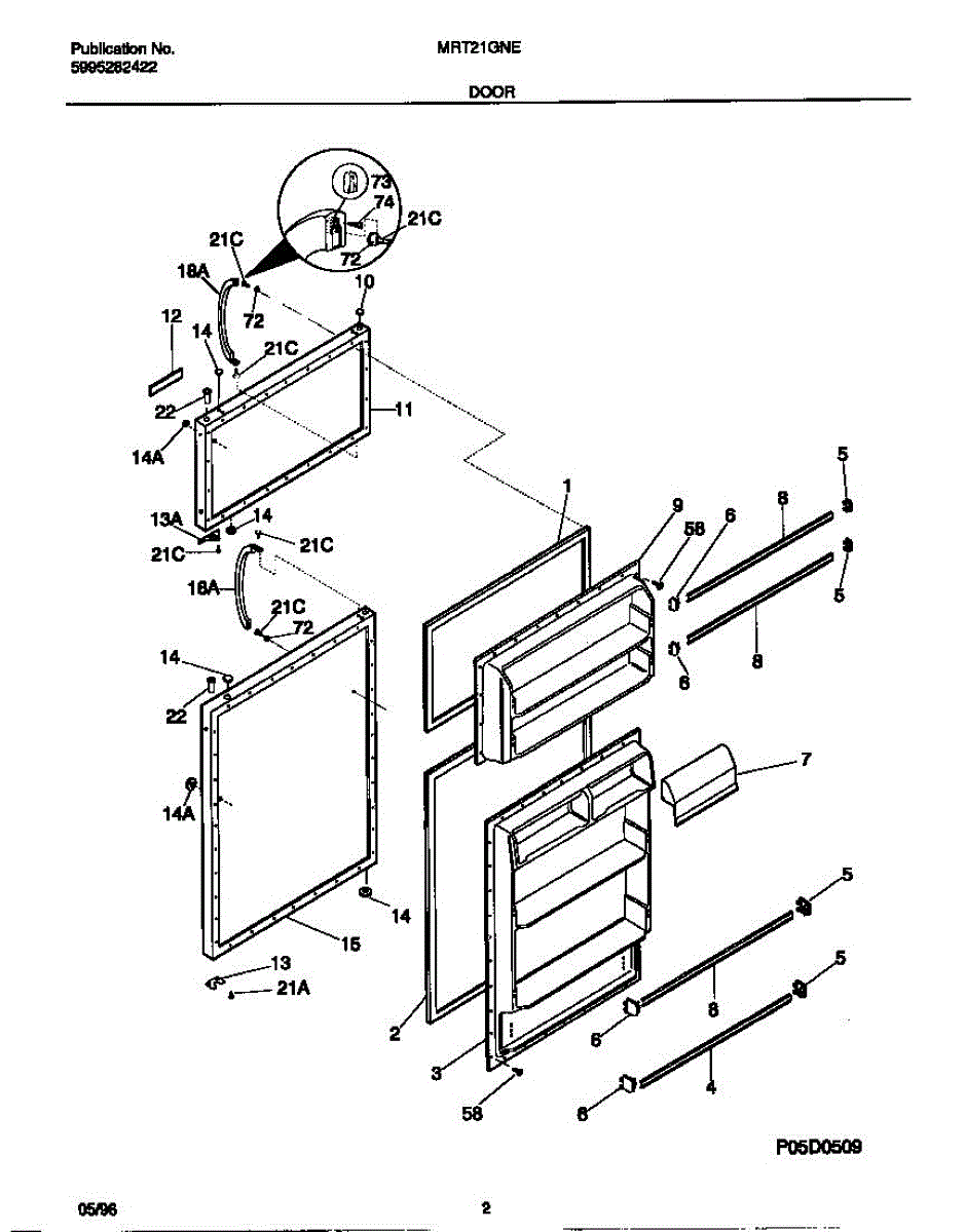 White outer door panel for refrigerator. Replaces cracked, dented, or discolored outer door panels. Includes insulation and brace for installation.