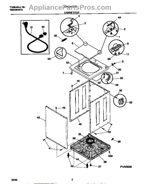 Protects the power cord where it passes through the washer cabinet. Replace if cracked, worn, or missing to prevent cord chafing and wire exposure.