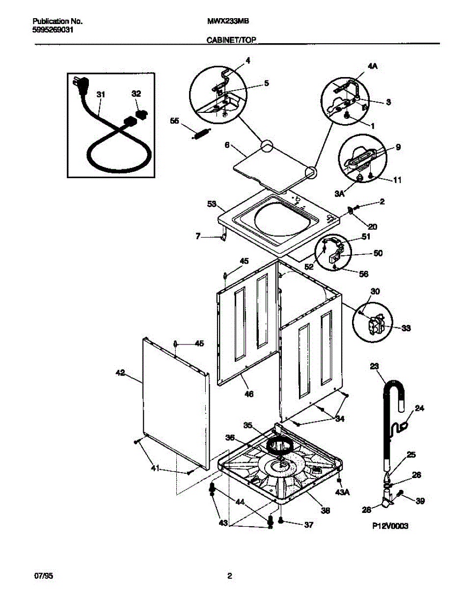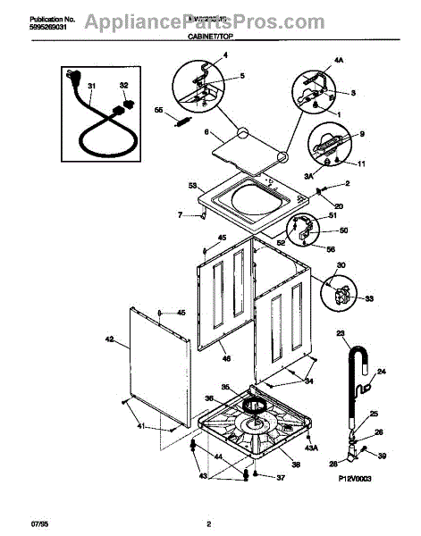 Protects the power cord where it passes through the washer cabinet. Replace if cracked, worn, or missing to prevent cord chafing and wire exposure.