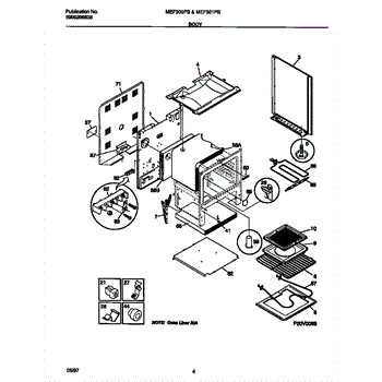 This oven insulation surrounds the oven cavity to retain heat and protect nearby components and cabinetry. Replacing a burnt or deteriorated insulation blanket restores temperature stability and helps keep exterior surfaces cooler on your range during cooking.