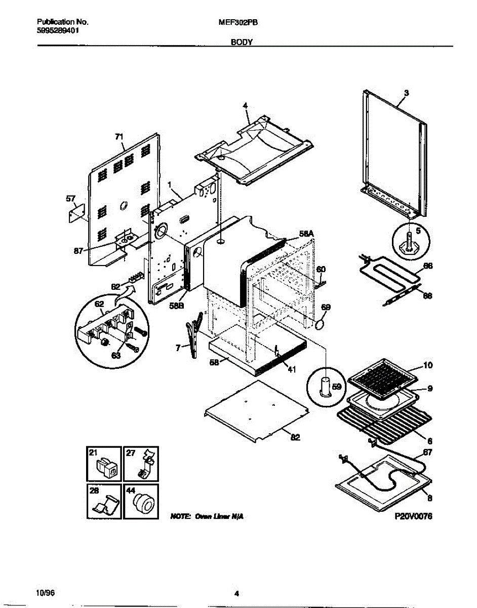 This oven insulation surrounds the oven cavity to retain heat and protect nearby components and cabinetry. Replacing a burnt or deteriorated insulation blanket restores temperature stability and helps keep exterior surfaces cooler on your range during cooking.