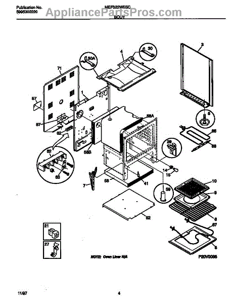 Fiberglass insulation panel that installs behind the oven cavity. Replaces missing, damaged, or rodent-chewed insulation to restore heat containment.
