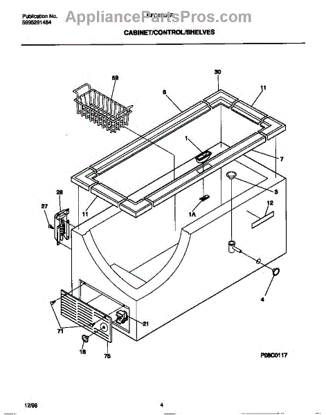 White access panel for chest and freestanding freezers. Covers internal components and provides service access. Replace if cracked, discolored, or missing.