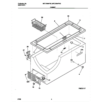 White access panel for chest and freestanding freezers. Covers internal components and provides service access. Replace if cracked, discolored, or missing.