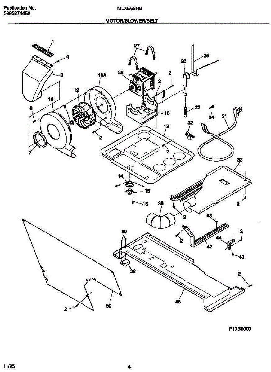 Encloses the blower wheel and channels air through your washer dryer combo's coils. Replace if cracked, warped, or melted to restore airflow and stop noise.