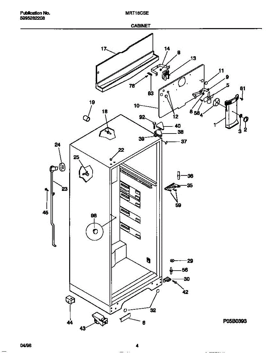 Lower hinge pin secures the refrigerator door to the cabinet, acting as the pivot point. Replace if worn, damaged, or broken to restore smooth operation.