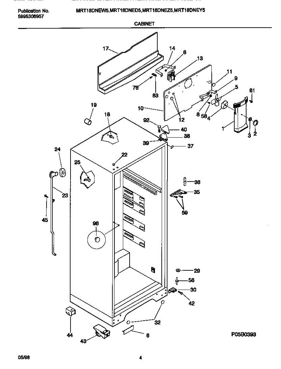 Lower hinge pin secures the refrigerator door to the cabinet, acting as the pivot point. Replace if worn, damaged, or broken to restore smooth operation.