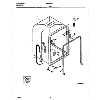 The Water Inlet Tubing is an OEM part for Frigidaire dishwashers. This tubing allows water to flow from the home's water supply lines into the dishwasher. Properly functioning inlet tubing is essential for supplying water to fill cycles and operate through different wash and rinse cycles. Causes of a bad water inlet tubing can include mineral or sediment build up inside the tubing restricting water flow, splitting or cracking of the tubing material from stress or age, or damage from sharp objects or wear and tear. Symptoms of a bad water inlet tubing include: