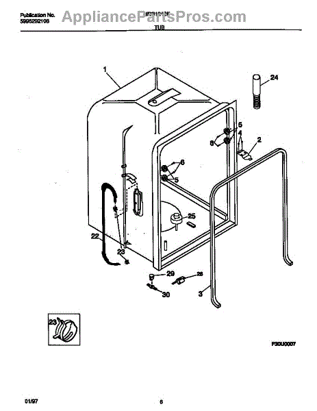 The Dishwasher Tub Gasket is an OEM replacement part for Frigidaire dishwashers. It seals the gap between the dishwasher tub and the door, preventing water leaks and ensuring efficient operation. This tub gasket is typically made of durable rubber or silicone material, designed to withstand the heat, moisture, and chemicals involved in the dishwashing process