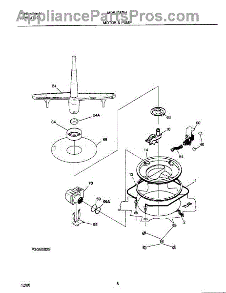 Secures the motor to the dishwasher pump housing. Replace if cracked, bent, or lost tension causing motor looseness or alignment issues during operation.