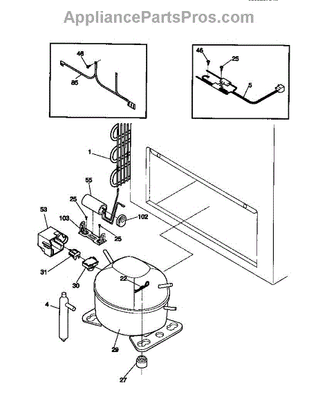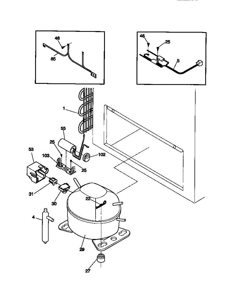• Cushions compressor movement to reduce vibration transmitted to the cabinet