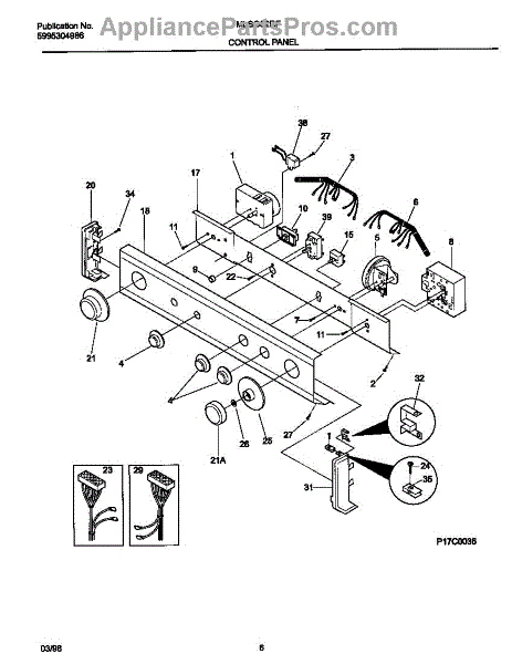 Control wiring harness for washer dryer combo units. Connects control panel to internal components. Replace if wires are frayed, damaged, or connector clips are broken.