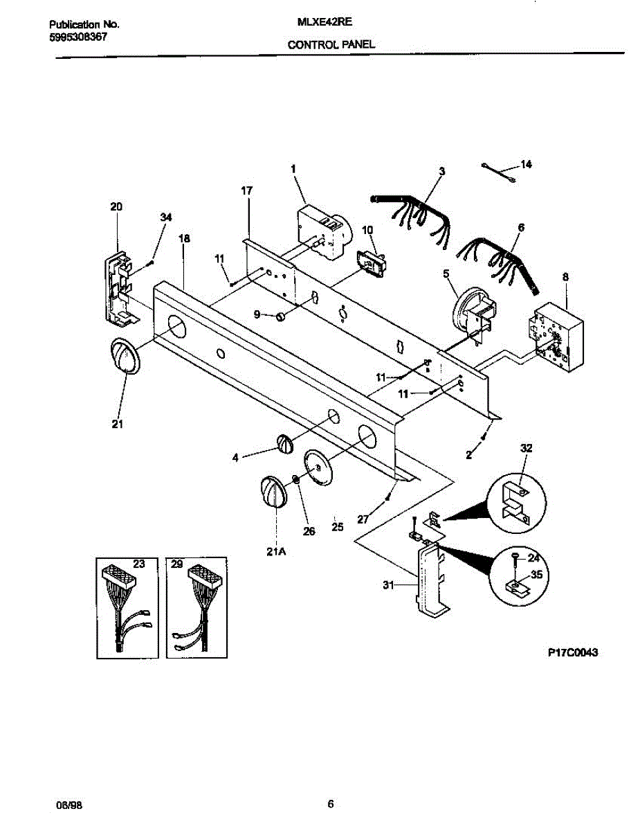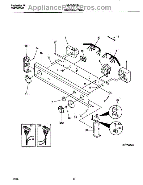 Control wire harness for washer dryer combo units. Connects control panel components. Replace if wires are frayed, connectors damaged, or harness broken.