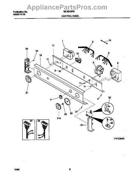 Control wire harness for washer dryer combo units. Connects control panel components. Replace if wires are frayed, connectors damaged, or harness broken.