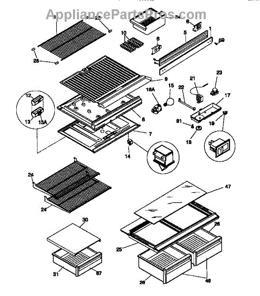 Parts for Frigidaire MRT18GRCD1: 04 - Shelves / Controls Parts