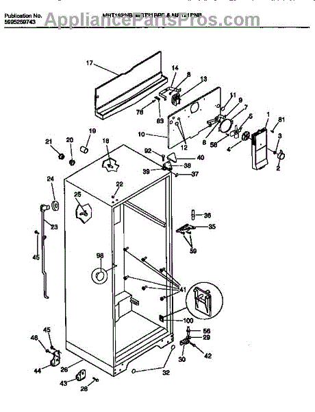 This plug covers the small factory test opening on an appliance cabinet or liner. Replacing a missing or damaged plug helps close the opening to maintain a better seal and restore a clean, finished appearance.