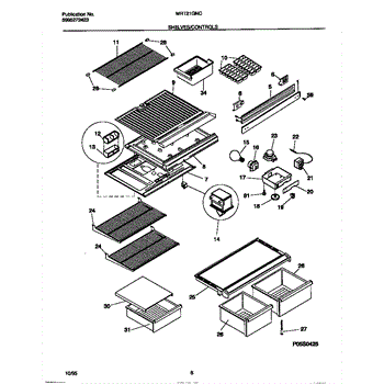 Plastic spacer that maintains proper distance between refrigerator shelves. Replace if cracked, broken, or missing to restore correct shelf positioning.