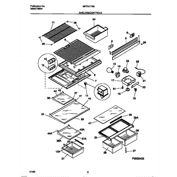 Replacement screw for securing shelf rails, meat pan brackets, and interior panels in refrigerators. Use when original screws are missing, stripped, or lost.