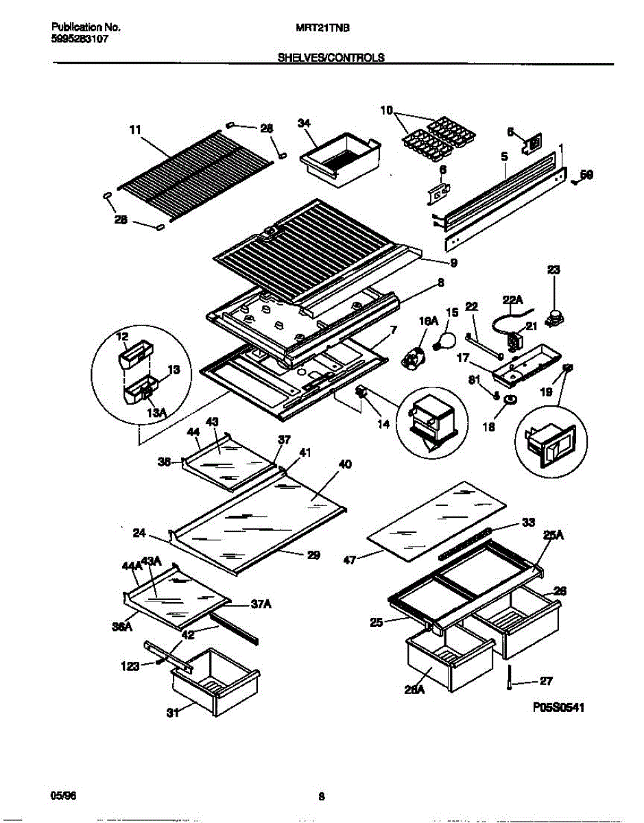 Replacement screw for securing shelf rails, meat pan brackets, and interior panels in refrigerators. Use when original screws are missing, stripped, or lost.
