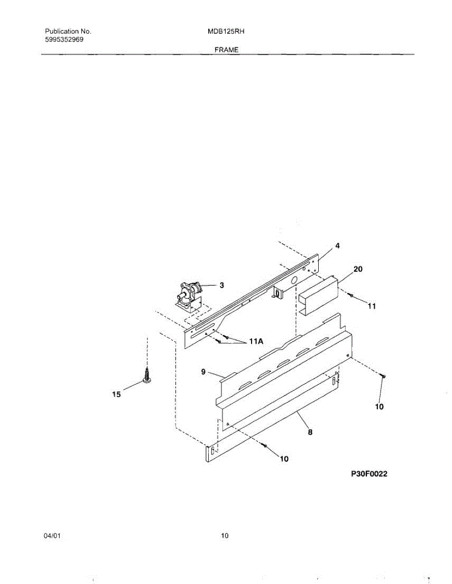 Replacement mounting screw for dishwasher panels and internal components. Needed when original screws are stripped, missing, or corroded during repairs.