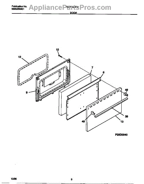 Parts for Frigidaire MEF302PBDH: 05 - Door Parts