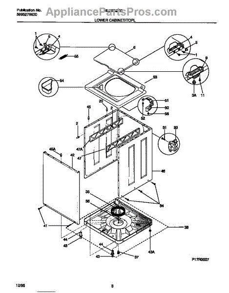 White cabinet assembly for laundry center units. Replace this outer frame if cracked, damaged, or worn. Includes full exterior housing structure.