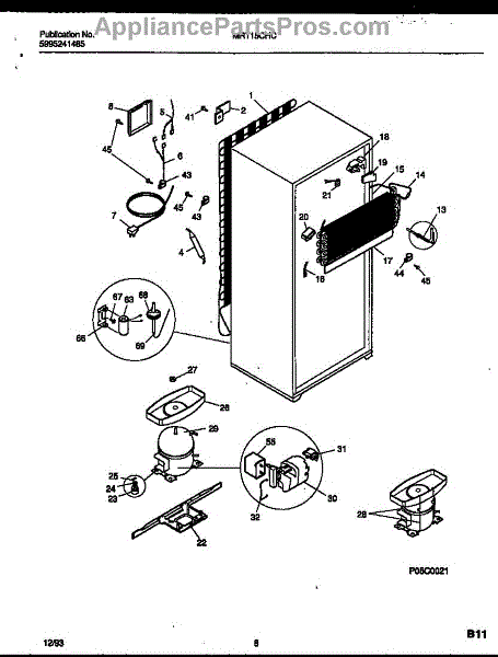 This is a compressor used in several types of home appliances. The compressor is designed to take cold gas in the appliance and place it under pressure so the gas raises in temperature. It is then moved through the refrigerator system to ensure the unit stays cold throughout the appliance. This part can become damaged or malfunction, which may cause the motor to stop running, make the motor noisier, or cause the motor to never stop running.If this happens, the compressor will need to be replaced. A basic set of tools will be needed. A pair of work gloves can also be useful. First, locate the compressor as it may be in various locations depending on the appliance model. Unplug the appliance before removing the compressor. Install the new compressor using the original bolts and nuts before turning the power back on and resuming normal use.This part is sold on an individual basis. The compressor is made to be used with refrigerators, ranges, stoves, ovens, air conditioners, and freezers created by Gibson, Frigidaire, Kelvinator, Montgomery Wards, Westinghouse, Tappan, JCPenney, Universal, and Kenmore. It is an authentic OEM replacement part directly sourced from the manufacturer.