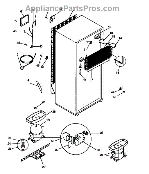 This is a compressor used in several types of home appliances. The compressor is designed to take cold gas in the appliance and place it under pressure so the gas raises in temperature. It is then moved through the refrigerator system to ensure the unit stays cold throughout the appliance. This part can become damaged or malfunction, which may cause the motor to stop running, make the motor noisier, or cause the motor to never stop running.If this happens, the compressor will need to be replaced. A basic set of tools will be needed. A pair of work gloves can also be useful. First, locate the compressor as it may be in various locations depending on the appliance model. Unplug the appliance before removing the compressor. Install the new compressor using the original bolts and nuts before turning the power back on and resuming normal use.This part is sold on an individual basis. The compressor is made to be used with refrigerators, ranges, stoves, ovens, air conditioners, and freezers created by Gibson, Frigidaire, Kelvinator, Montgomery Wards, Westinghouse, Tappan, JCPenney, Universal, and Kenmore. It is an authentic OEM replacement part directly sourced from the manufacturer.