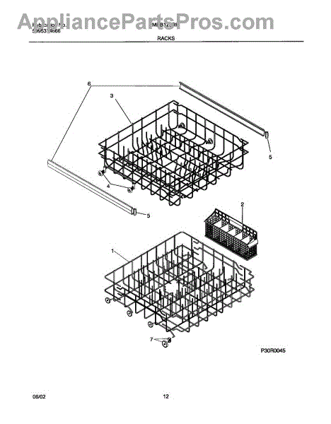 Complete lower dishrack assembly that slides on tub rails. Holds plates, bowls, and cookware. Replace when original rack is rusted, cracked, or damaged.
