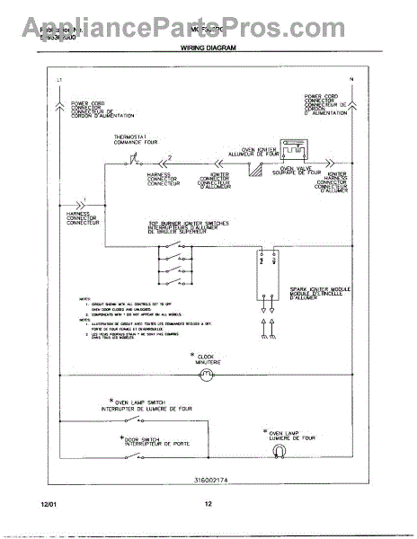 Parts for Frigidaire MGF303PGDK: 12 - Wiring Diagram Parts