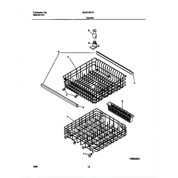 Replace your dishwasher's lower dishrack assembly if it's rusted, cracked, or has broken tines. This gray rack holds dishes securely during wash cycles.