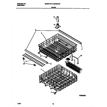 Replace your dishwasher's lower dishrack assembly if it's rusted, cracked, or has broken tines. This gray rack holds dishes securely during wash cycles.