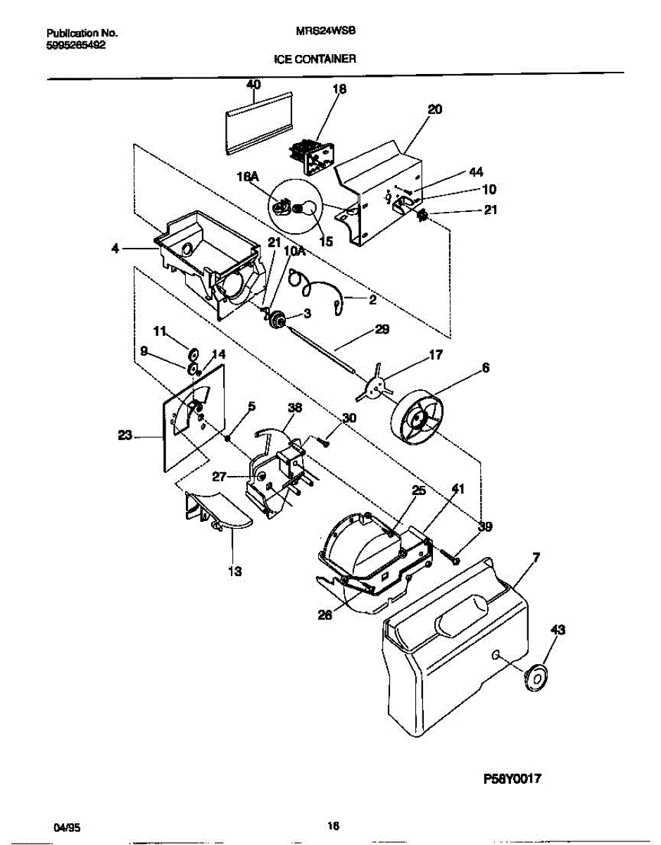 This auger motor powers the ice dispenser, rotating the ice-bin auger to feed cubes or crushed ice to the door chute. A failed motor stops dispensing, leaving ice in the bucket when the paddle or lever is pressed.