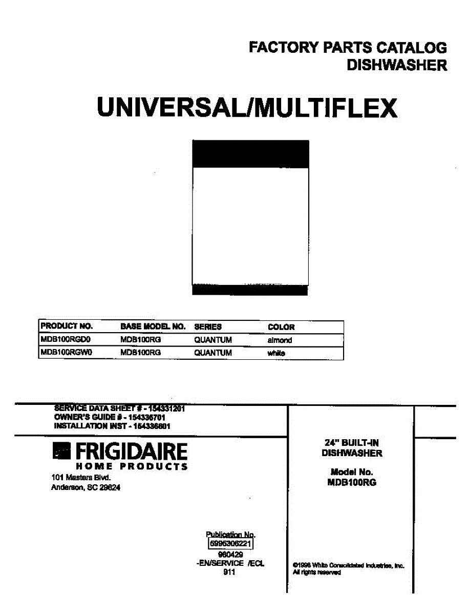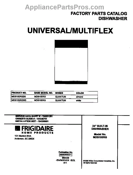 Parts for Frigidaire MDB100RGW0: 01 - Cover Parts