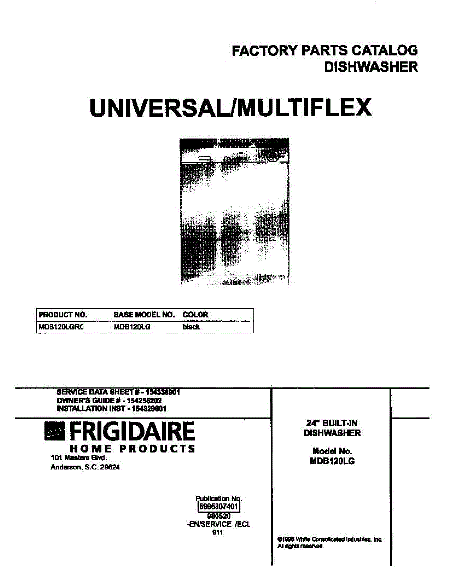 Parts for Frigidaire MDB120LGR0: 01 - Cover Parts