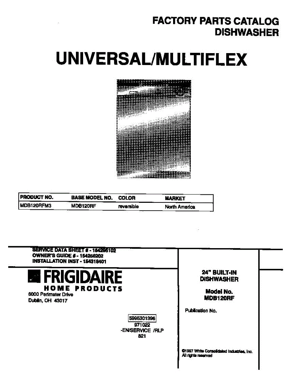 Parts for Frigidaire MDB120RFM3: 01 - Cover Parts