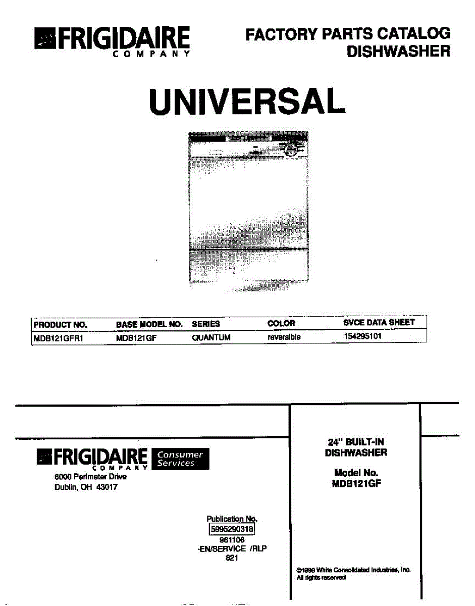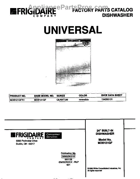 Parts for Frigidaire MDB121GFR1: 01 - Cover Parts