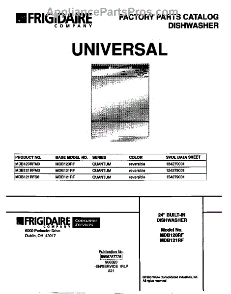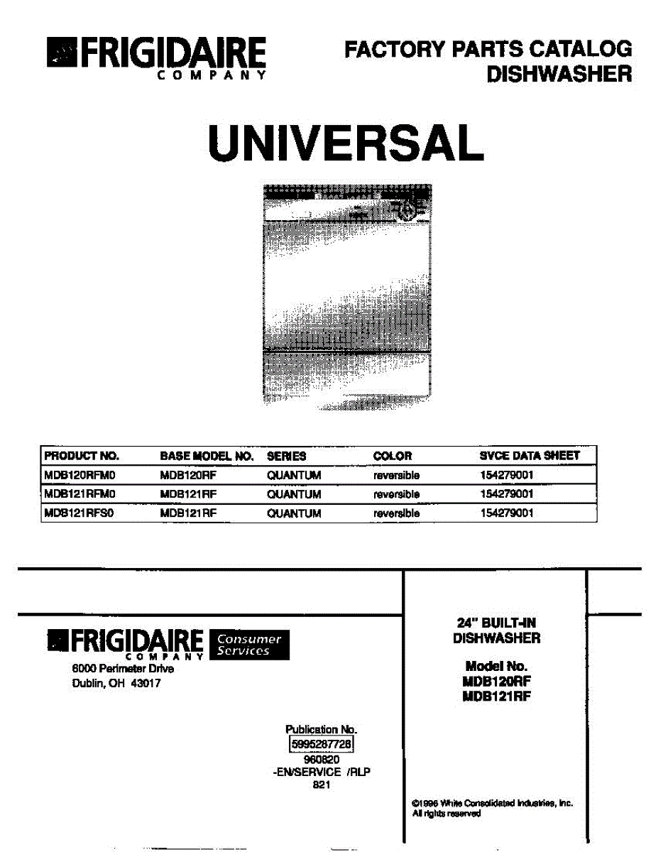 Parts for Frigidaire MDB121RFM0: 01 - Cover Parts