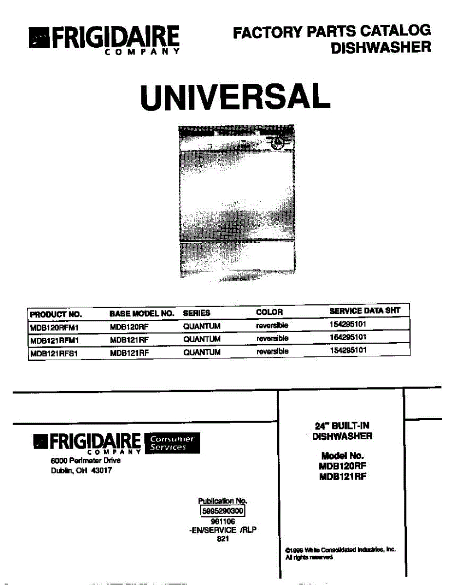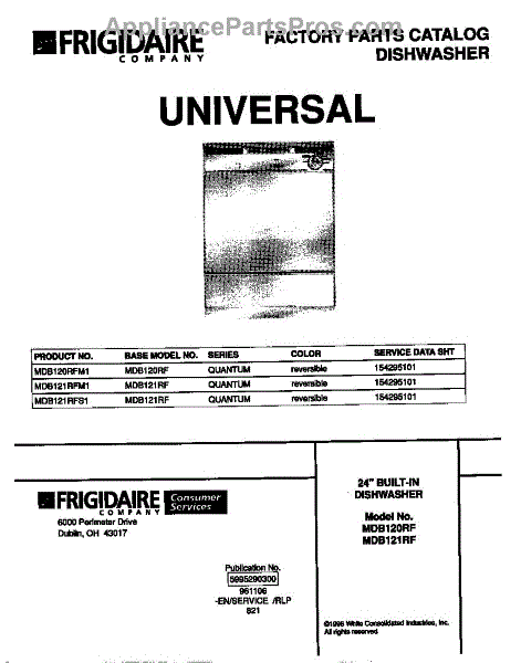 Parts for Frigidaire MDB121RFS1: 01 - Cover Parts
