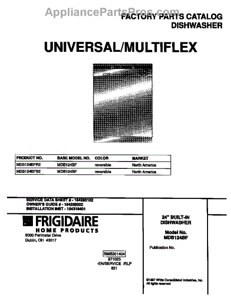 Parts for Frigidaire MDB124BFS2: 01 - Cover Parts