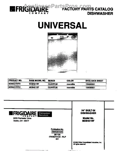 Parts for Frigidaire MDB421RFS1: 01 - Cover Parts
